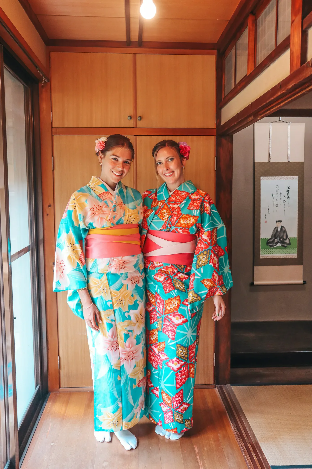 Once you’re full and ready to explore, head over to Higashiyama Ward and Gion District. This area is perfect for wandering, with its traditional streets, temples, and the famous tea ceremony and kimono experience. Seriously, this was one of the highlights of our trip! We learned so much about Japanese culture while getting dressed up in beautiful kimonos, and participating in a traditional tea ceremony felt like such a special, peaceful moment that really immersed us into the culture.