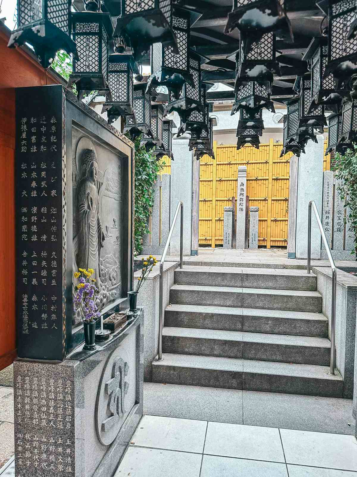 As the sun sets, continue your stroll down Hozenji Yokocho, a charming, narrow street lined with traditional restaurants and bars. The architecture is super unique, and the ambiance will make you feel like you’ve stepped back in time.