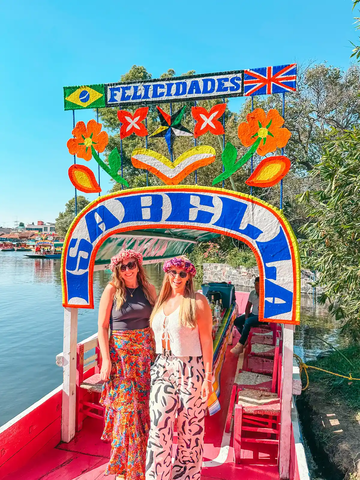 Next up—Xochimilco for a boat tour you won’t forget. It’s about an hour away from Coyoacán, and the experience lasts around 2.5 hours. You’ll hop on a colorful trajinera and cruise the canals with unlimited drinks and some snacks along the way.