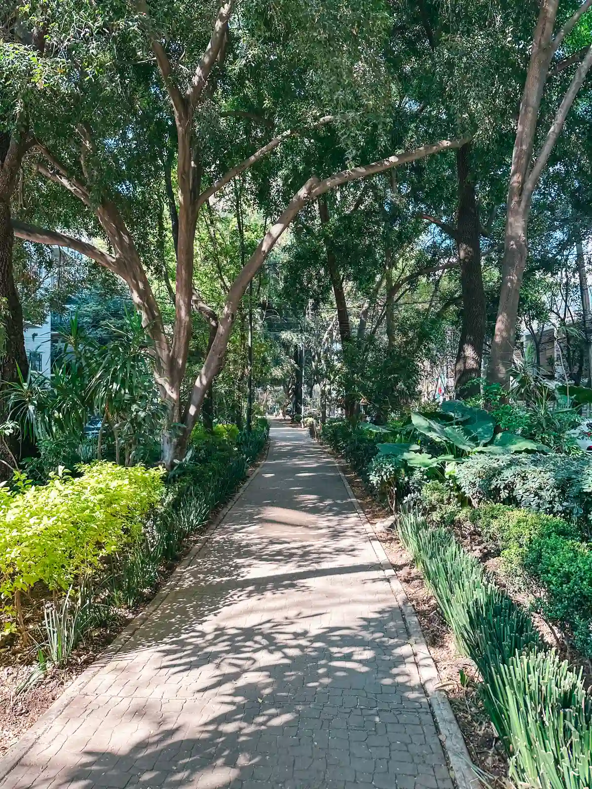 Next, take a walk through the Hipódromo neighborhood. It’s seriously so cute! Parque México is this peaceful green space where locals are out walking their dogs and doing all sorts of fitness activities. And Calle Amsterdam wraps around it with tree-lined walkways and cool architecture—it’s such a vibe.